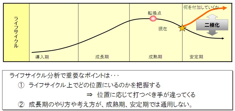 日本の産業界がリーマンショック以降、伸び悩んでいることもありますが、一番の問題は日本の産業界がライフサイクル上の「成熟期」以降に突入していることです。